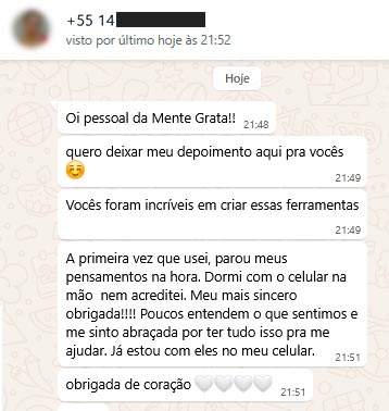 Sou duplamente pós-graduada e atuo como terapeuta há mais de 9 anos. Com a Mente Grata já somos mais de 8400 alunos em mais de 12 países.
