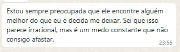 Eu recebi essa mensagem no WhatsApp que mostra como a insegurança pode acabar com o equilíbrio mental.